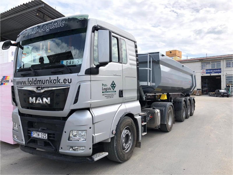 A közúti áruszállítás mellett természetesen a földmunka által kitermelt anyagok és ömlesztett árúk (sóder, homok, stb.) szakszerű elszállítását is vállaljuk.